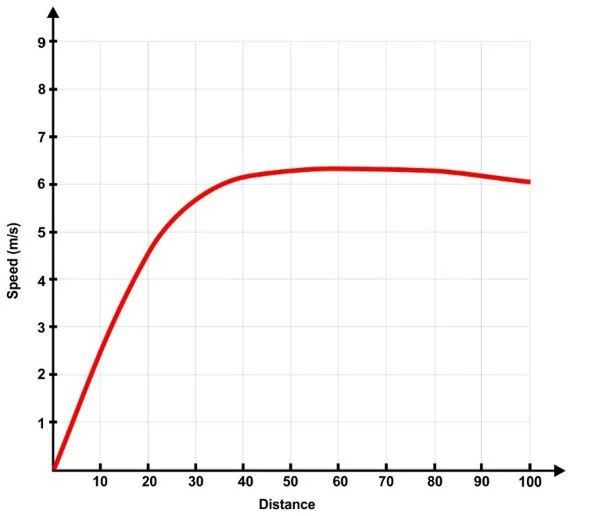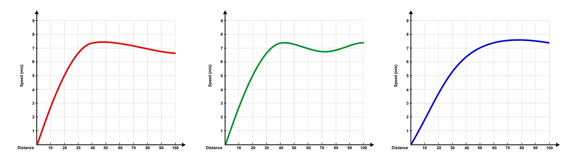 • Slower start but faster acceleration later in the sprint