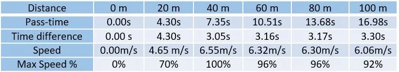 •Strong acceleration at the beginning but difficulty maintaining speed.