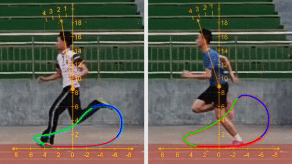 Now let’s take a look at the same runners at the same stride, but this time focusing on the cyclic trajectory, as shown in the visuals below.