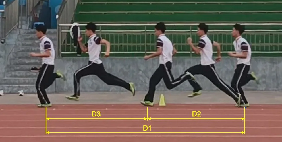 It is important to note that two foot strikes or steps (D2 + D3) equal one stride (D1). Understanding this will help us clearly follow the content in the rest of the article.