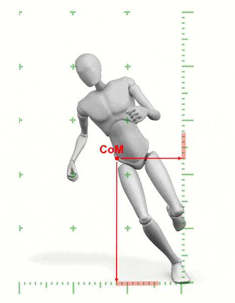 ✅ Fv (Vertical force): This is the ground pushing upward against your body weight, keeping you supported against gravity. It remains constant whether you’re running straight or turning and always acts through the foot you place on the ground.